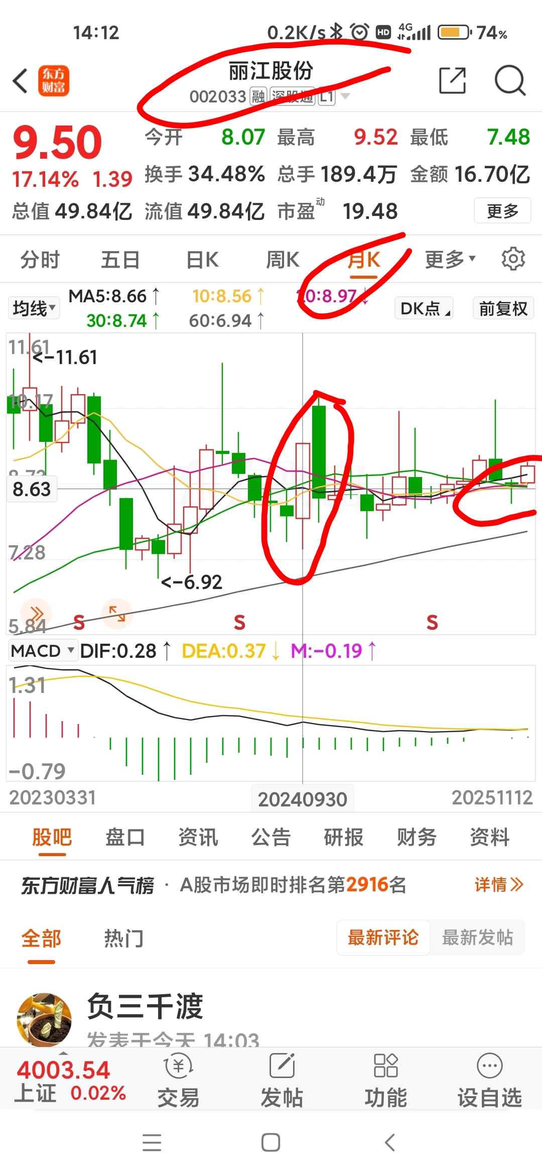 $丽江股份(SZ002033)$ 丽江其实挺不容易的!大盘已创十年新高的情况下!而丽江与去年9月30日还差5%!而与去年国庆还差15%