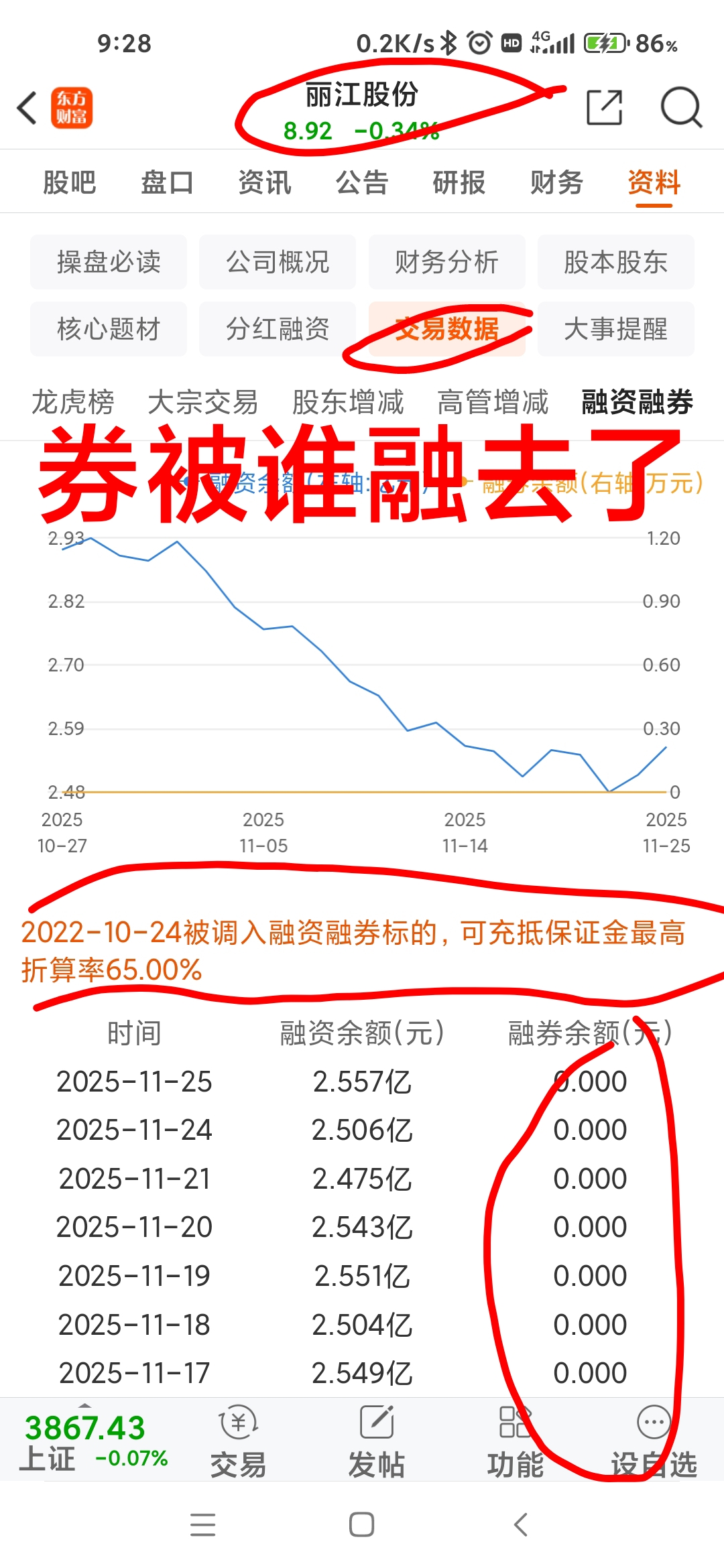 融券余额为0!卷已被主力全部拿去砸盘割韭菜了!小散注意安全!小心入套丽江!