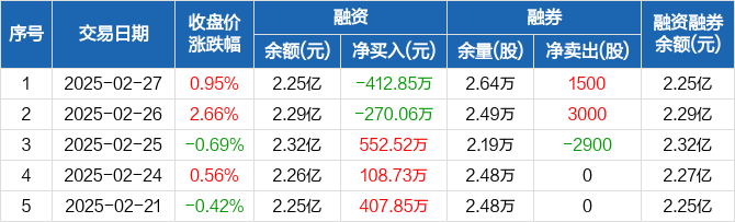 华帝股份:融资净偿还412.85万元,融资余额2.25亿元(02-27)