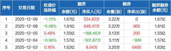 华帝股份:融资净买入534.82万元,融资余额1.67亿元(12-09)