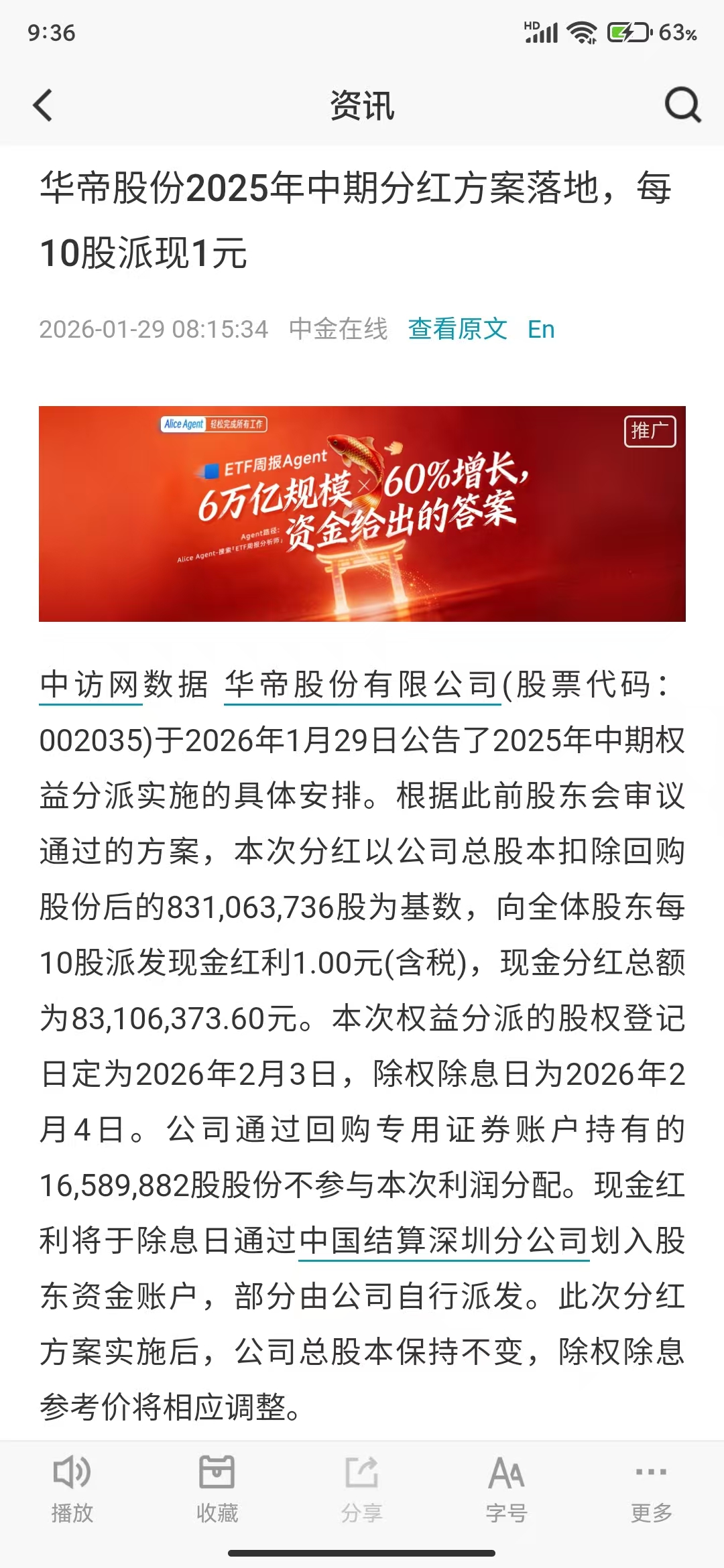 2月4日(下周四)发中期股息
