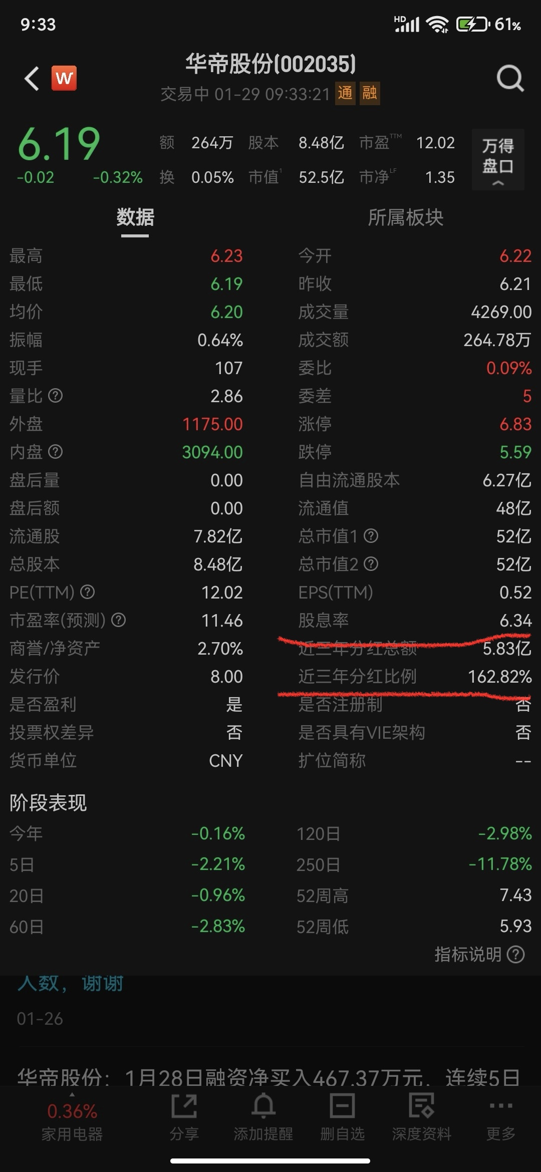 华帝公司比较挣钱,连续N年发分红了,目前股息率超过6%。