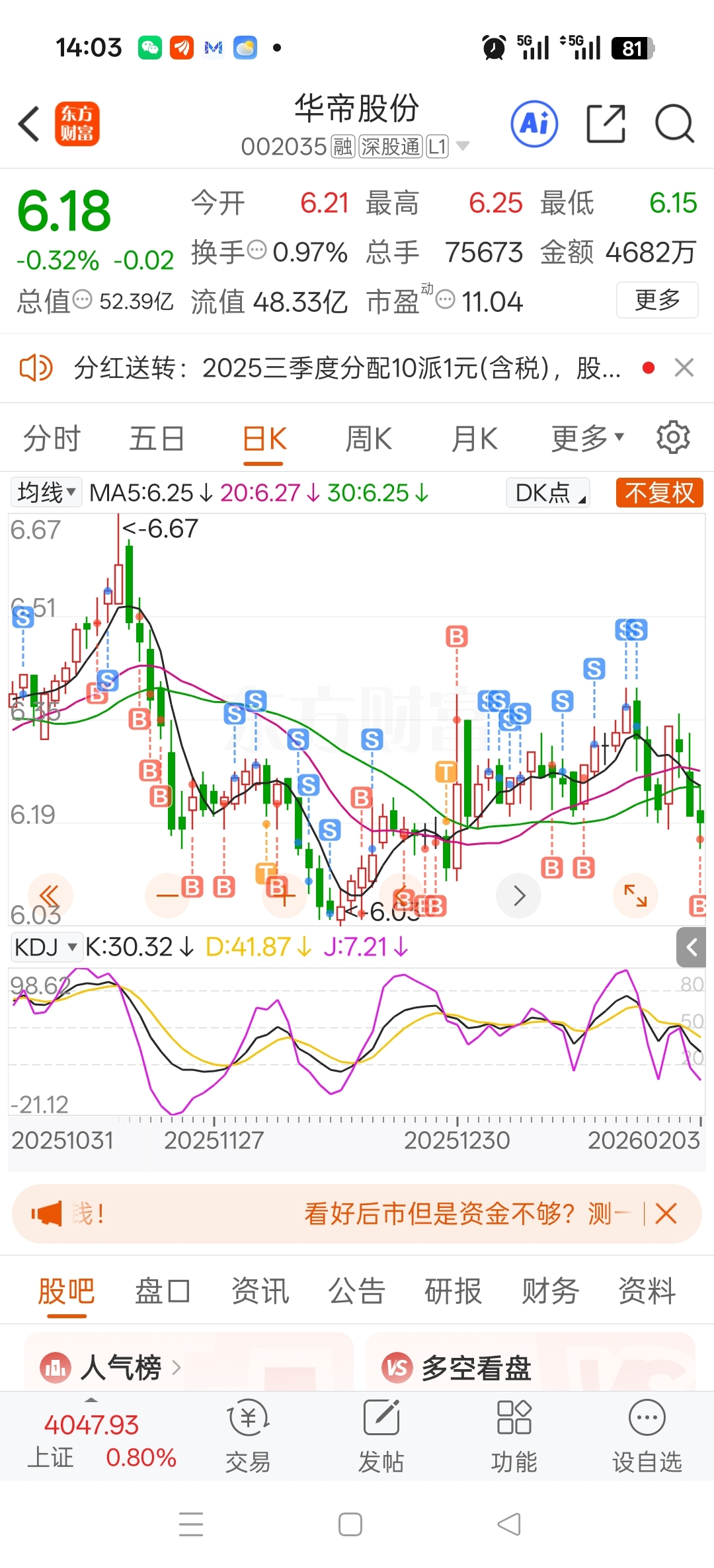 $华帝股份(SZ002035)$ 小仓等分红