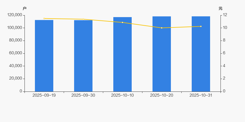 自2025年9月30日以来,公司股东户数连续3期上涨,截至目前增幅为5.40%。2025年9月30日至2025年10月31日区间股价下降9.93%。