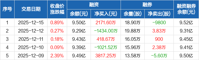联创电子:融资净买入2171.6万元,融资余额9.5亿元(12-15)