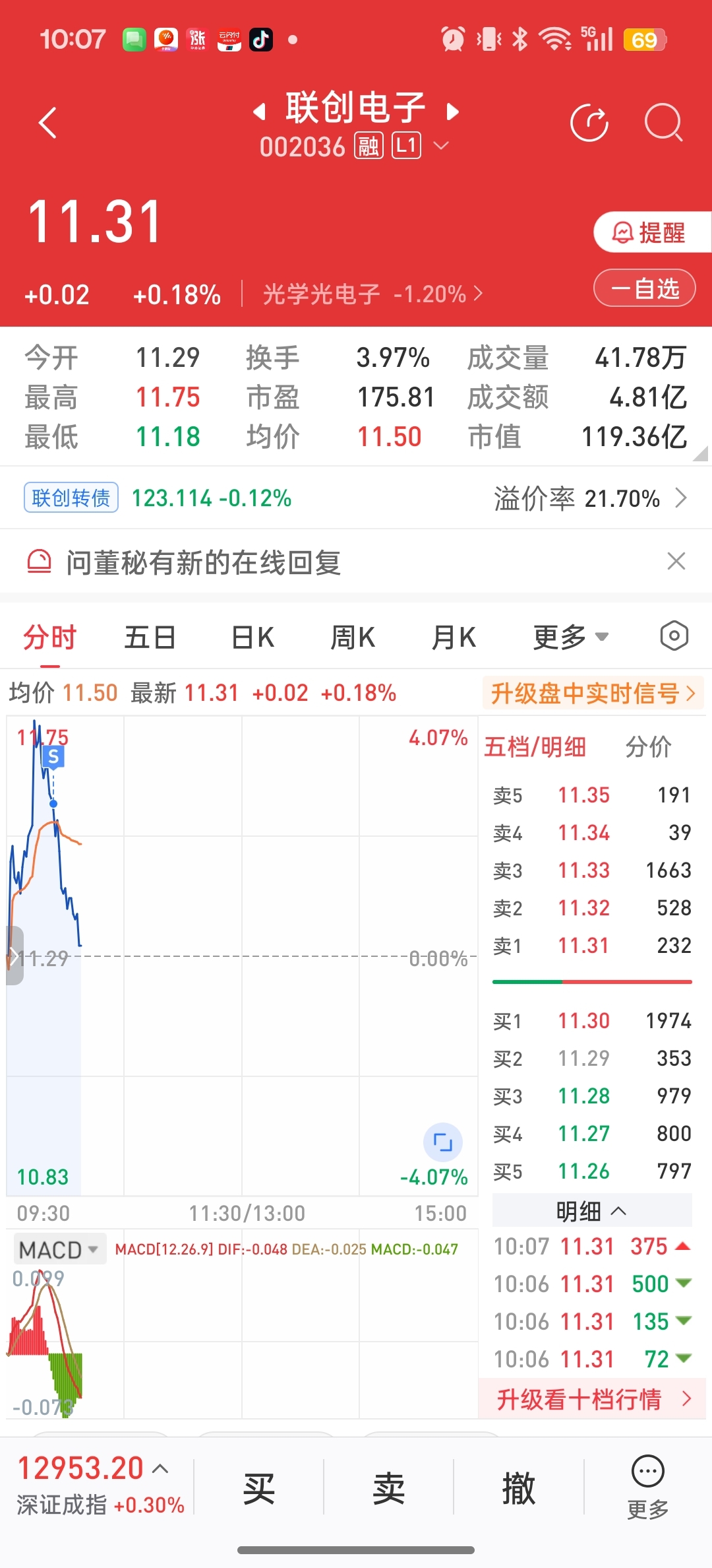 $联创电子(SZ002036)$ 还是没有逃最顶