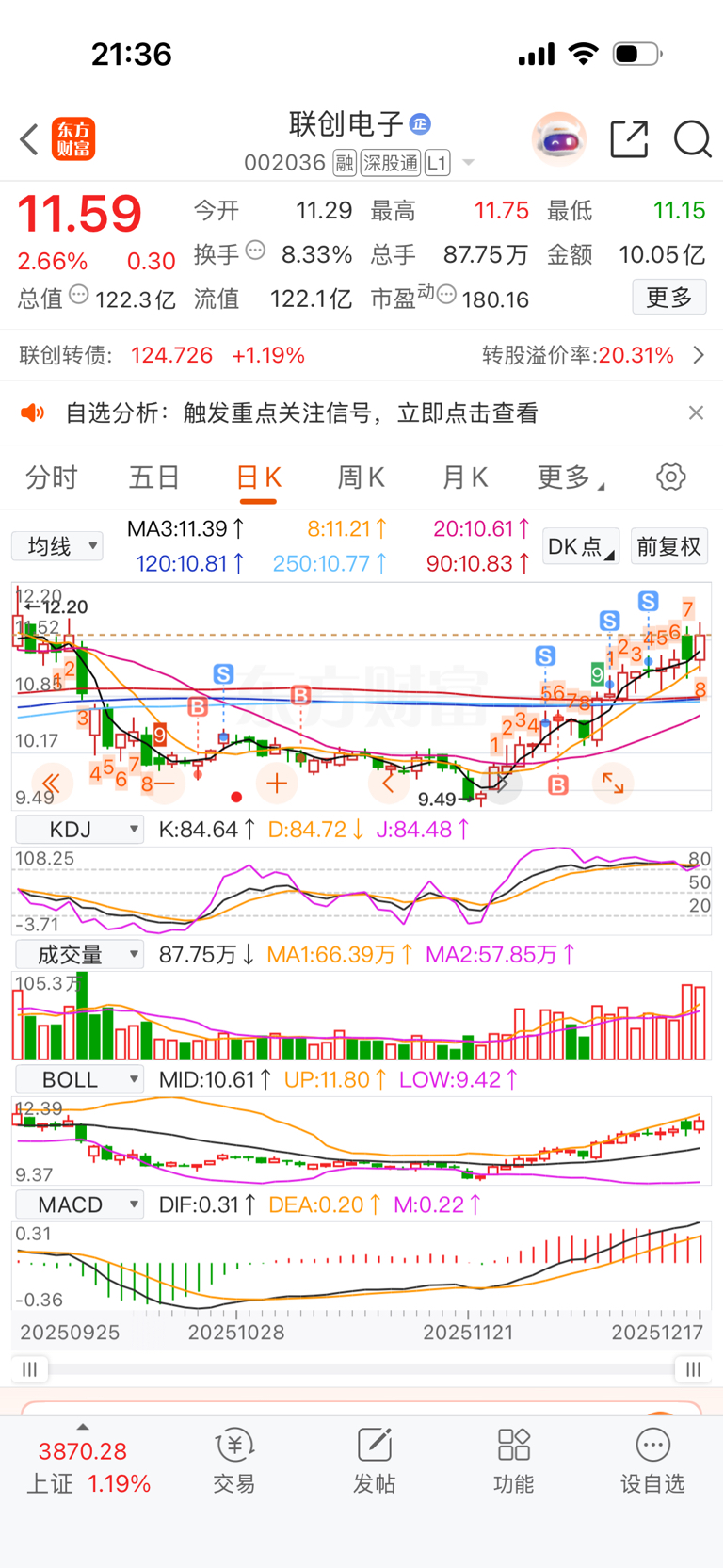 $联创电子(SZ002036)$ 以后我卖了你们就买,不会错。