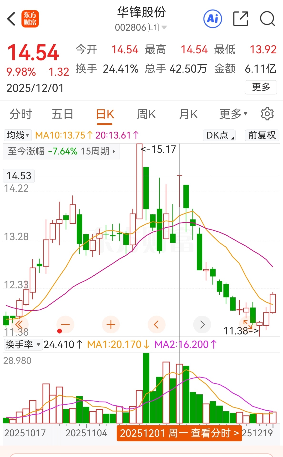 $联创电子(SZ002036)$ 002806,控股权变更,交易价格是15元/股,停牌前收报13.22元,所有人都在准备数板,结果复牌第一天就没封死,盘中多次打开,尾盘勉强拉了一个板,往后的交易日一泻千里。前车之鉴,联创警示。作为联创股民,当然期待有好表现,但实际需要观察。