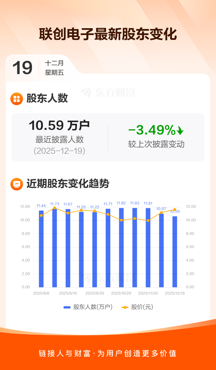 联创电子:截至12月19日最新股东户数10.59万户,较上期减少3.49%