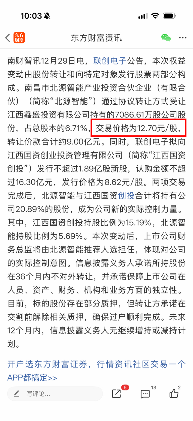 你们觉得江西国资委会不知道联创电子的业绩吗?还故意12.7元每股收购?你们细品