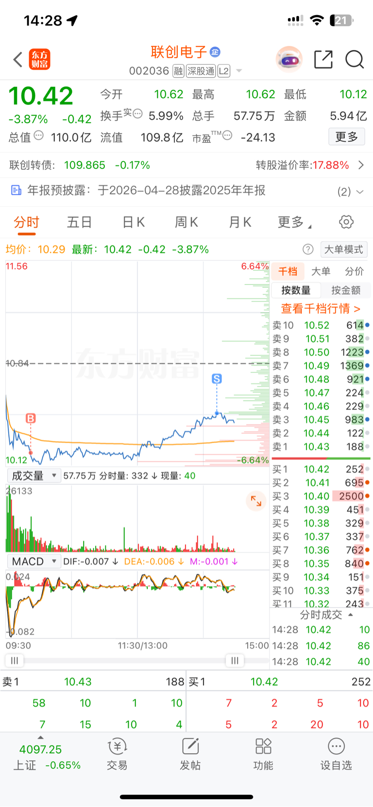 $联创电子(SZ002036)$ 还好今天t了一波,伤的没那么厉害,明天大概率还要接着跌!