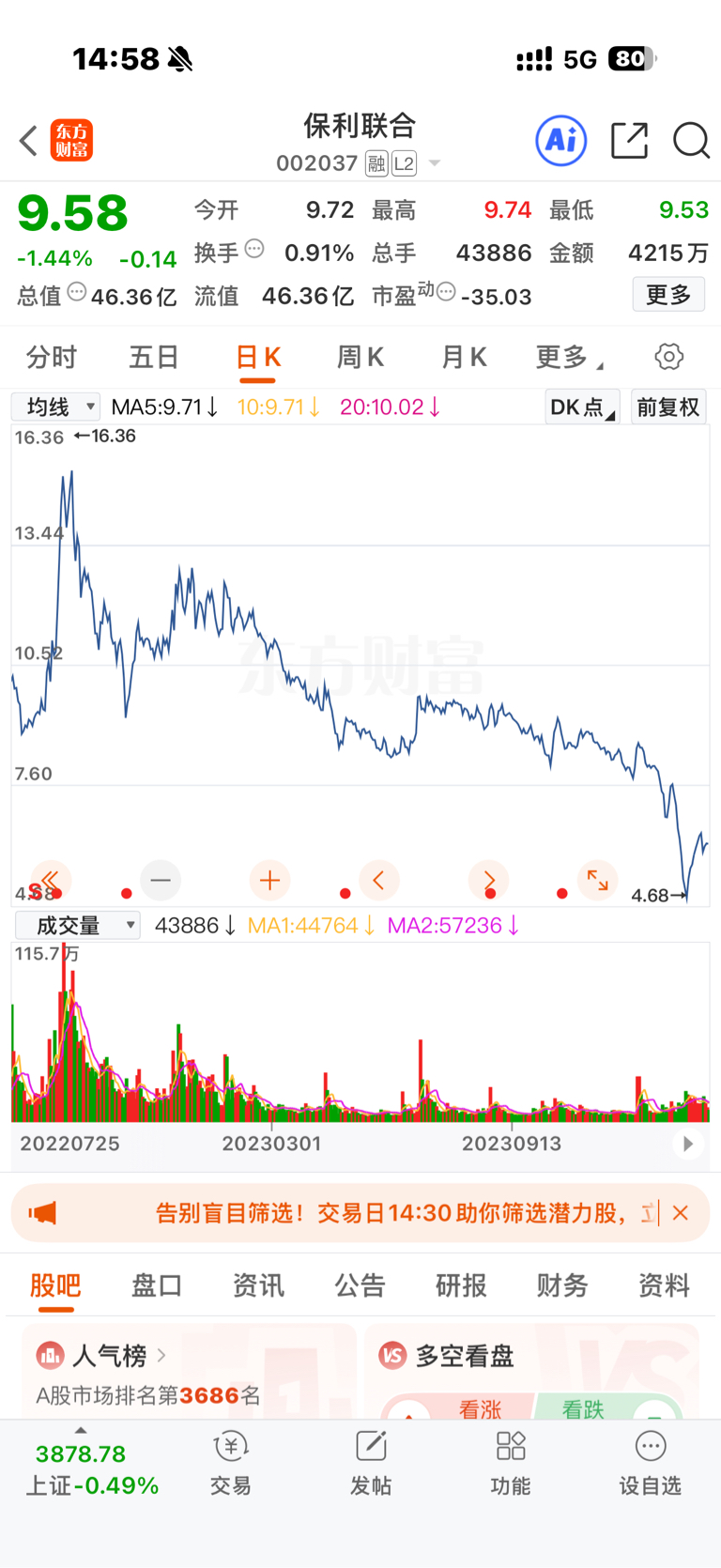 $保利联合(SZ002037)$ 这次看看能不能跌倒四块多,加仓干