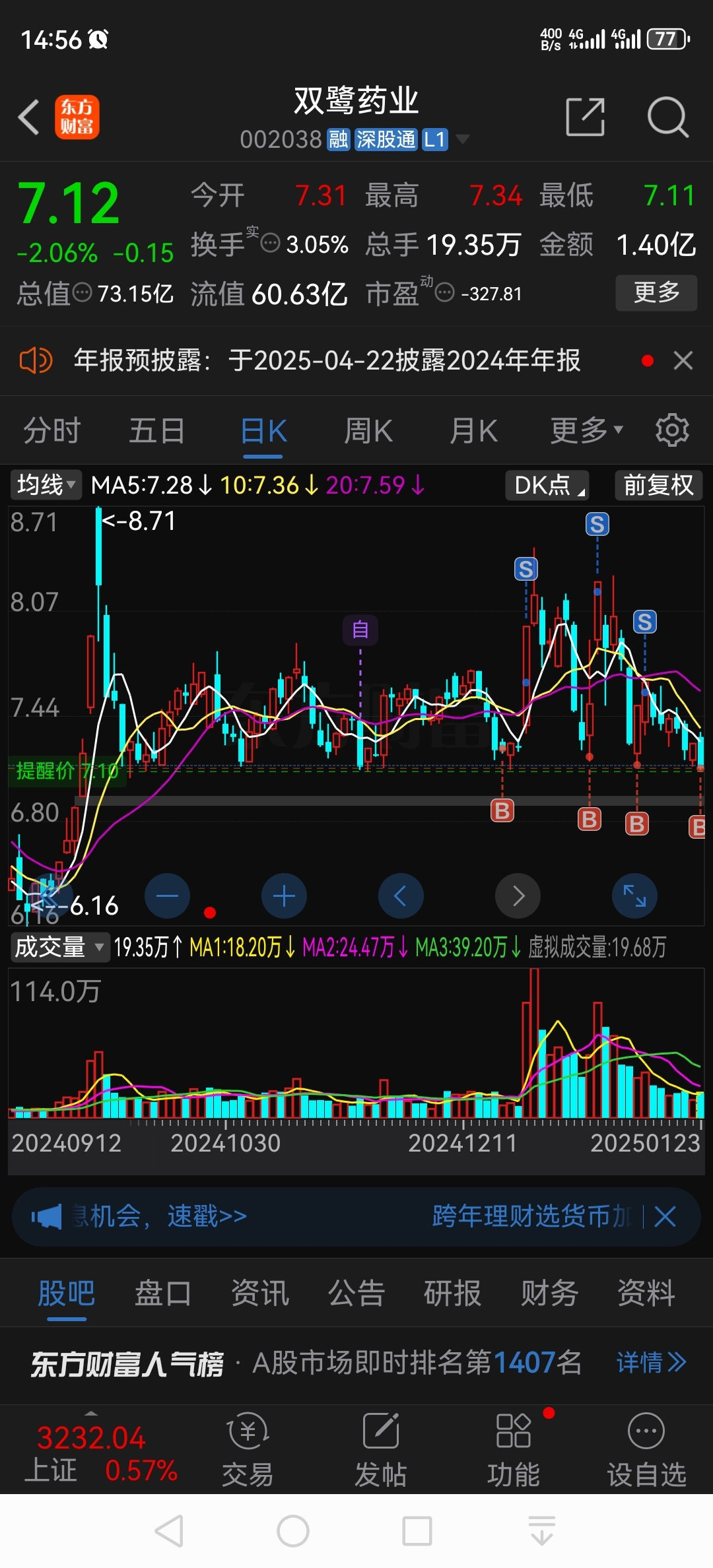 $双鹭药业(SZ002038)$ 此号今天第四次建仓,明天加仓