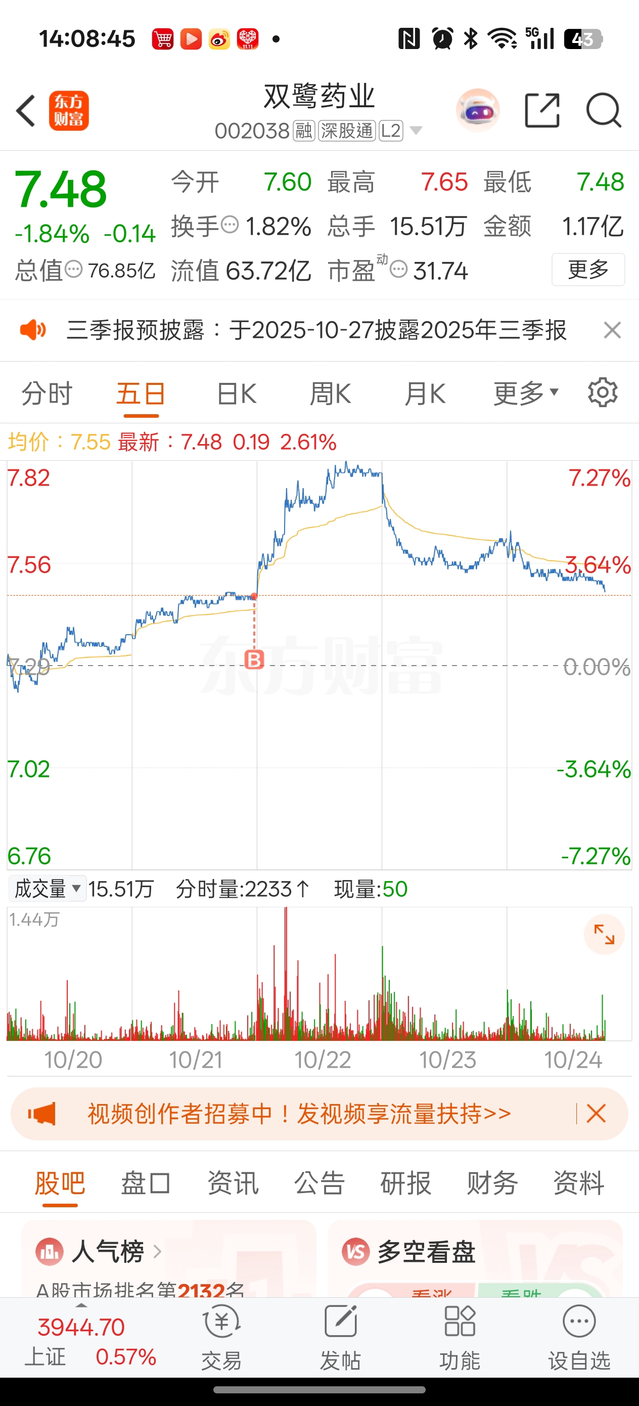 $双鹭药业(SZ002038)$ 牛啊,这过山车坐的,刺激。