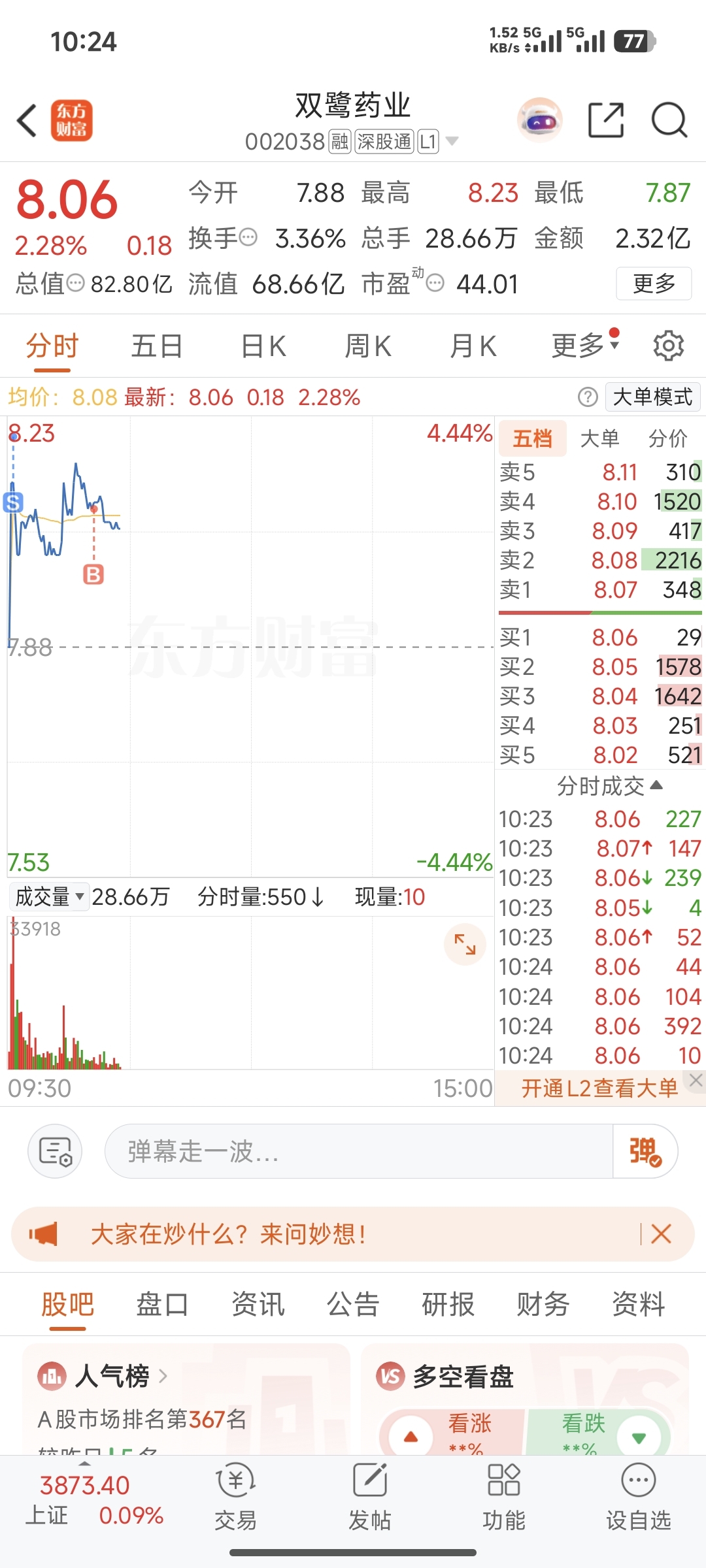 $双鹭药业(SZ002038)$ 卖点很好,买点很垃圾,看同板块太强了,想等会儿再接,疯狂的拉