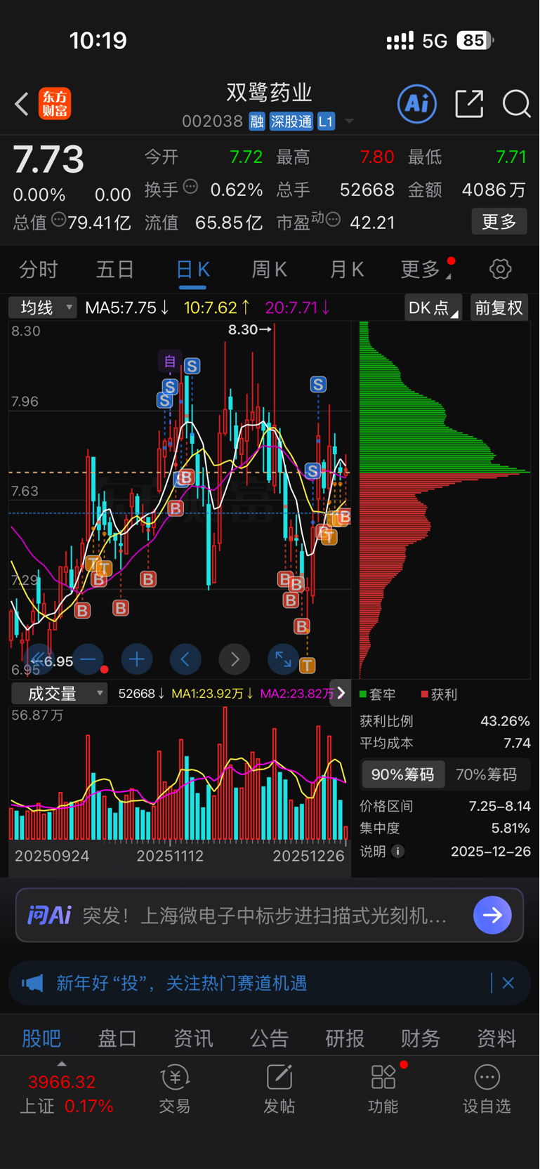 $双鹭药业(SZ002038)$ 这个股票 绝对是好股票 最稳定 可以来回做T