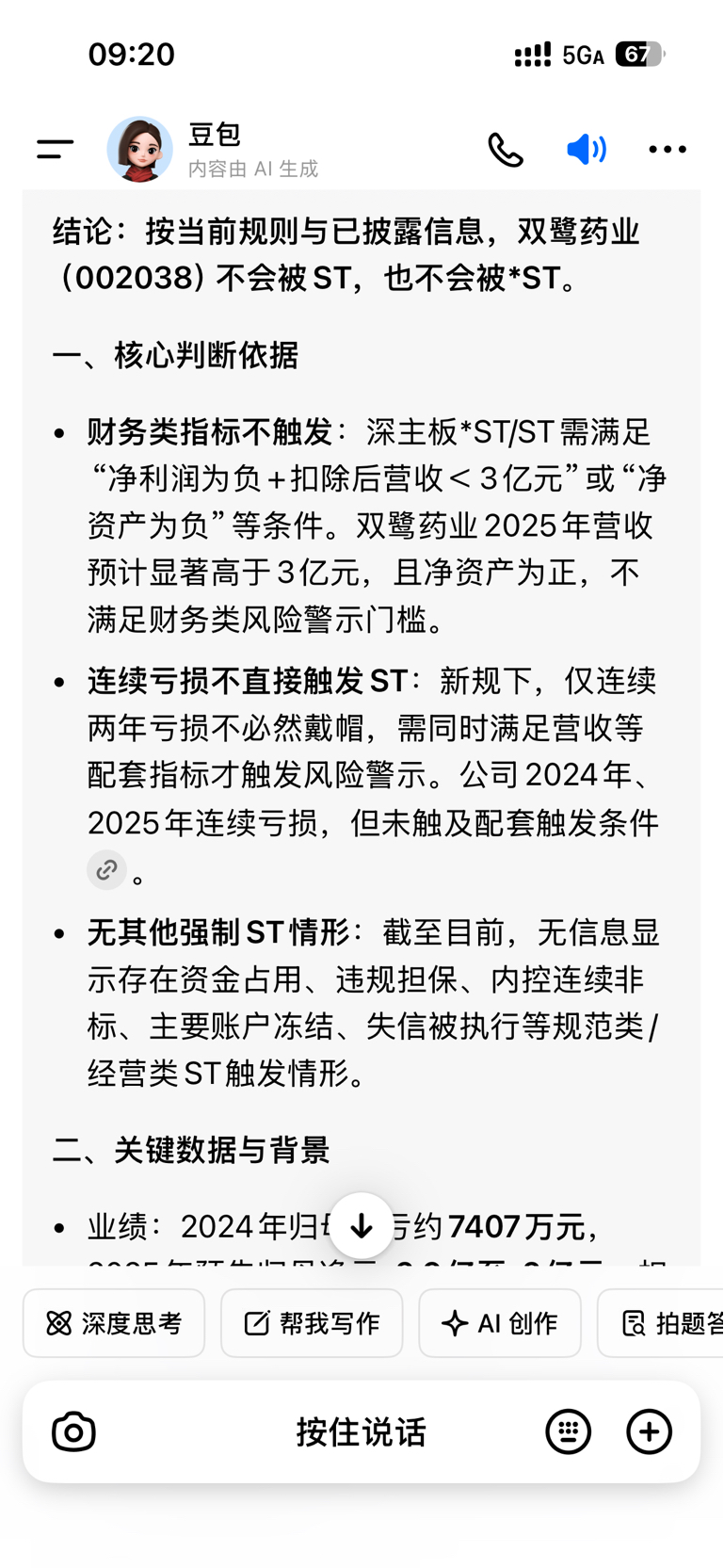 $双鹭药业(SZ002038)$ 别带节奏了 只亏损不会被st