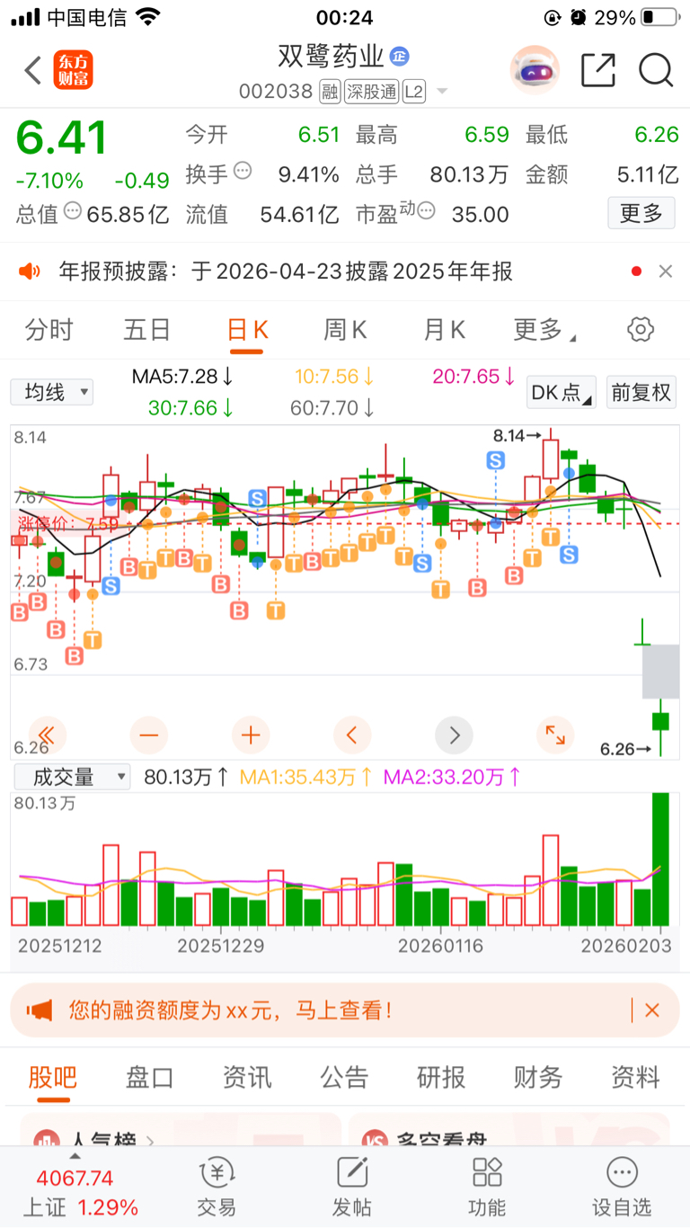 $双鹭药业(SZ002038)$ 还真的运气好,暴雷前几天清仓,本来还继续做个波段,它都搞了三次波峰,这次的波峰太低了,反而不敢进来。