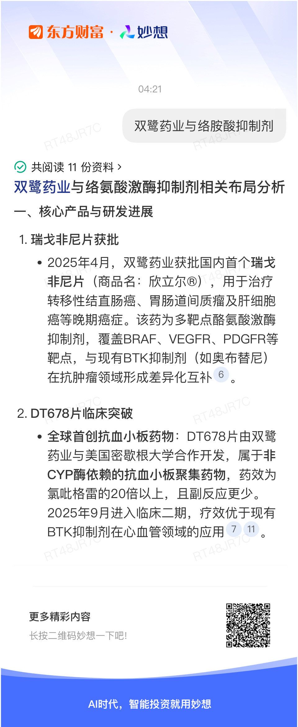 #@妙想,你怎么看?# 妙想一下:双鹭药业与络胺酸抑制剂