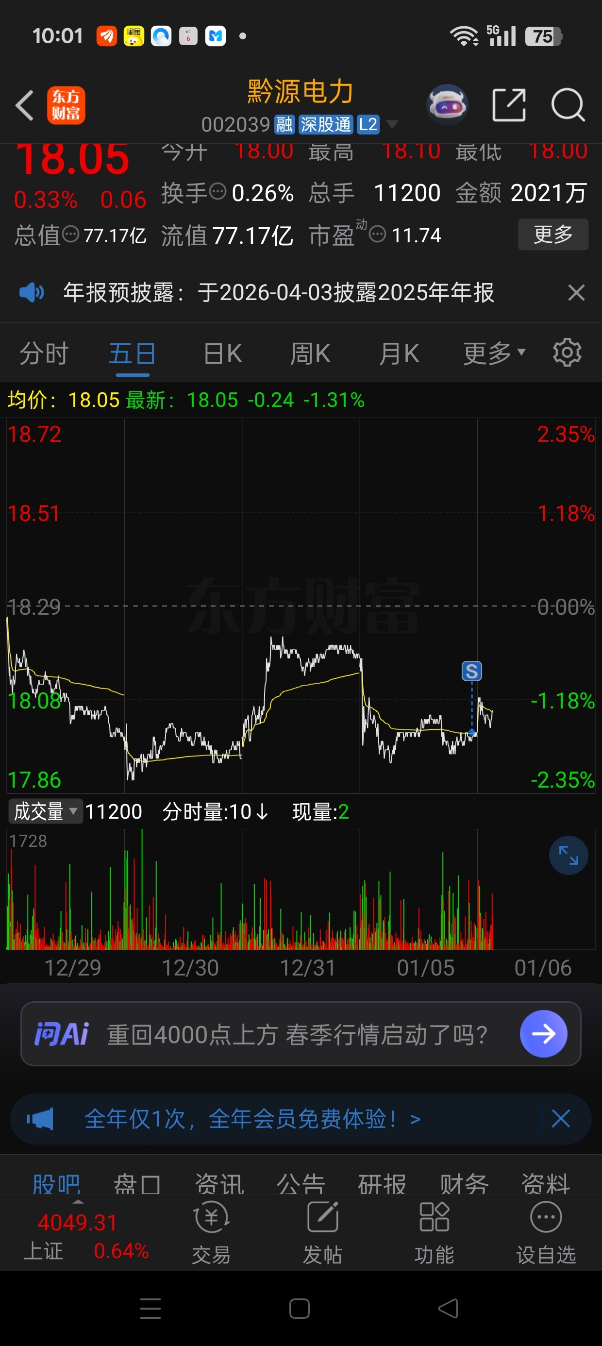 $黔源电力(SZ002039)$ 昨天卖了,希望我是对的。快下来吧。