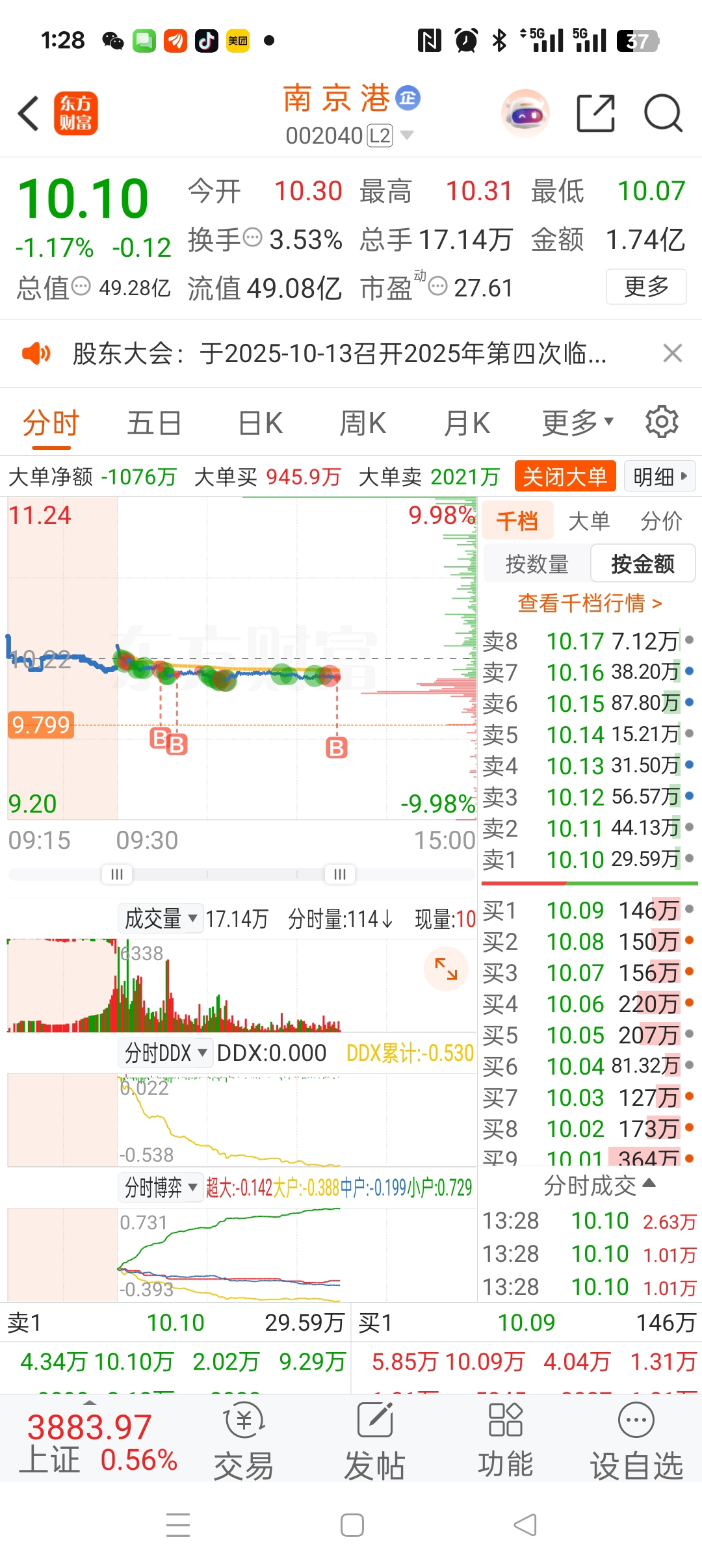 $南 京 港(SZ002040)$ 今天三次抄底,大家恐慌,我买入。