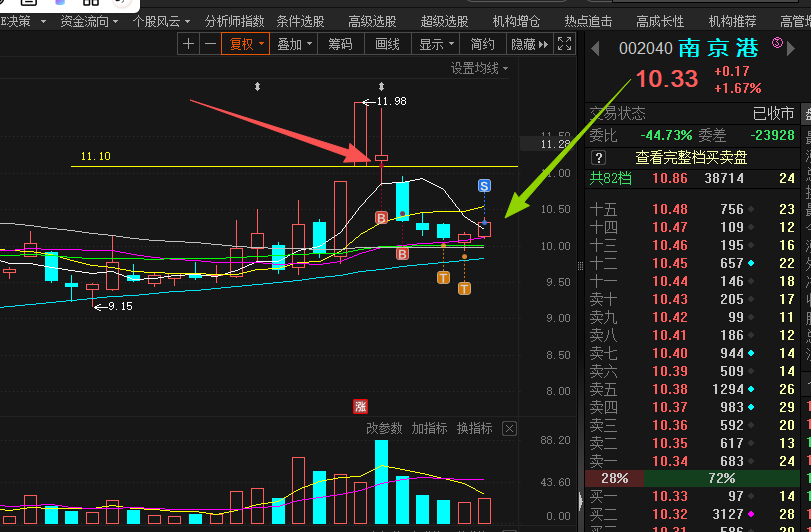 1.短线博弈失败;2.后期拉升压力在11.10左右,支撑9.85左右;
