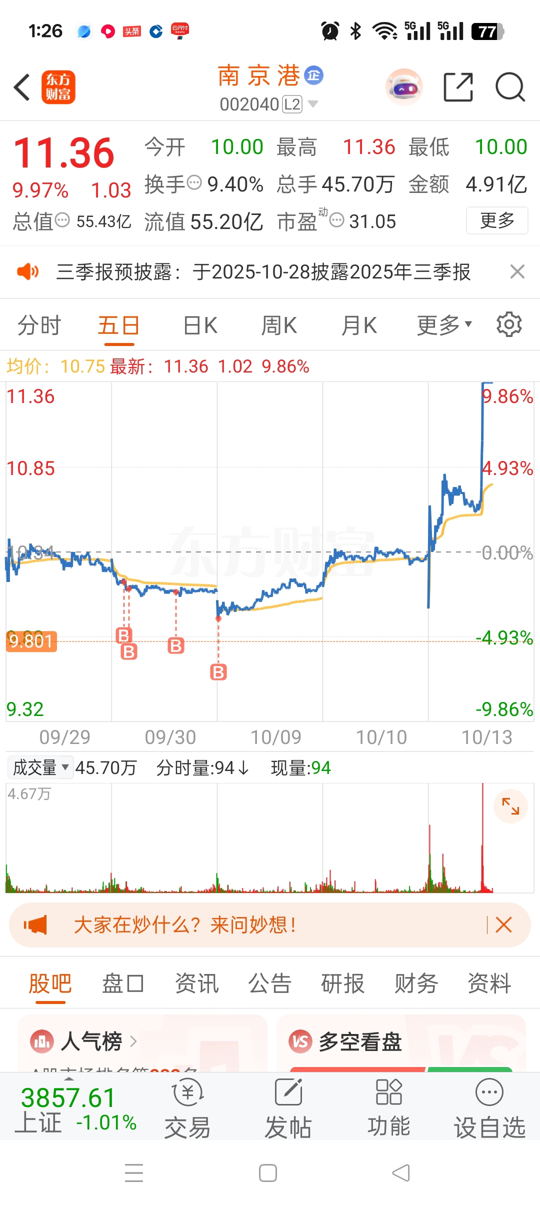 $南 京 港(SZ002040)$ 大家嫌弃你,我可怜你买了点,终于等来涨停。