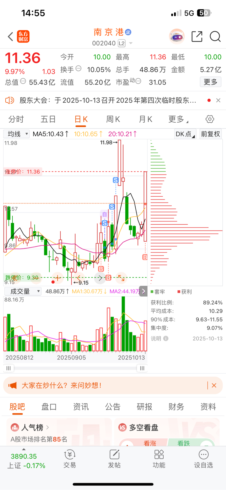 $南 京 港(SZ002040)$ 明天不是一字板,我砸给主力,前两次做反了,大爷的