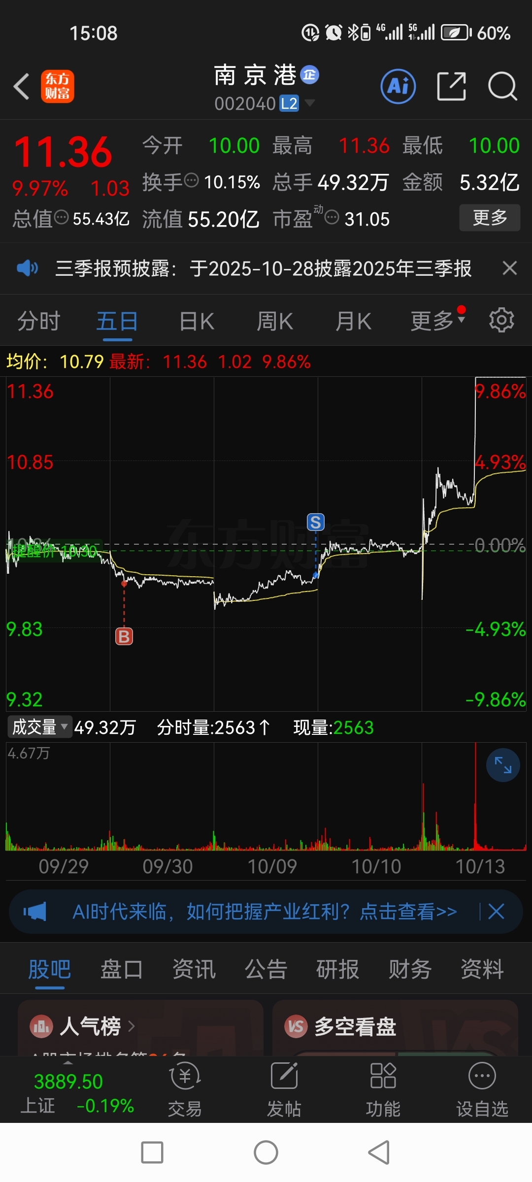 $南 京 港(SZ002040)$ 唉,卖早了,买入的炬申今天跌破支持位了,看明天收盘吧!
