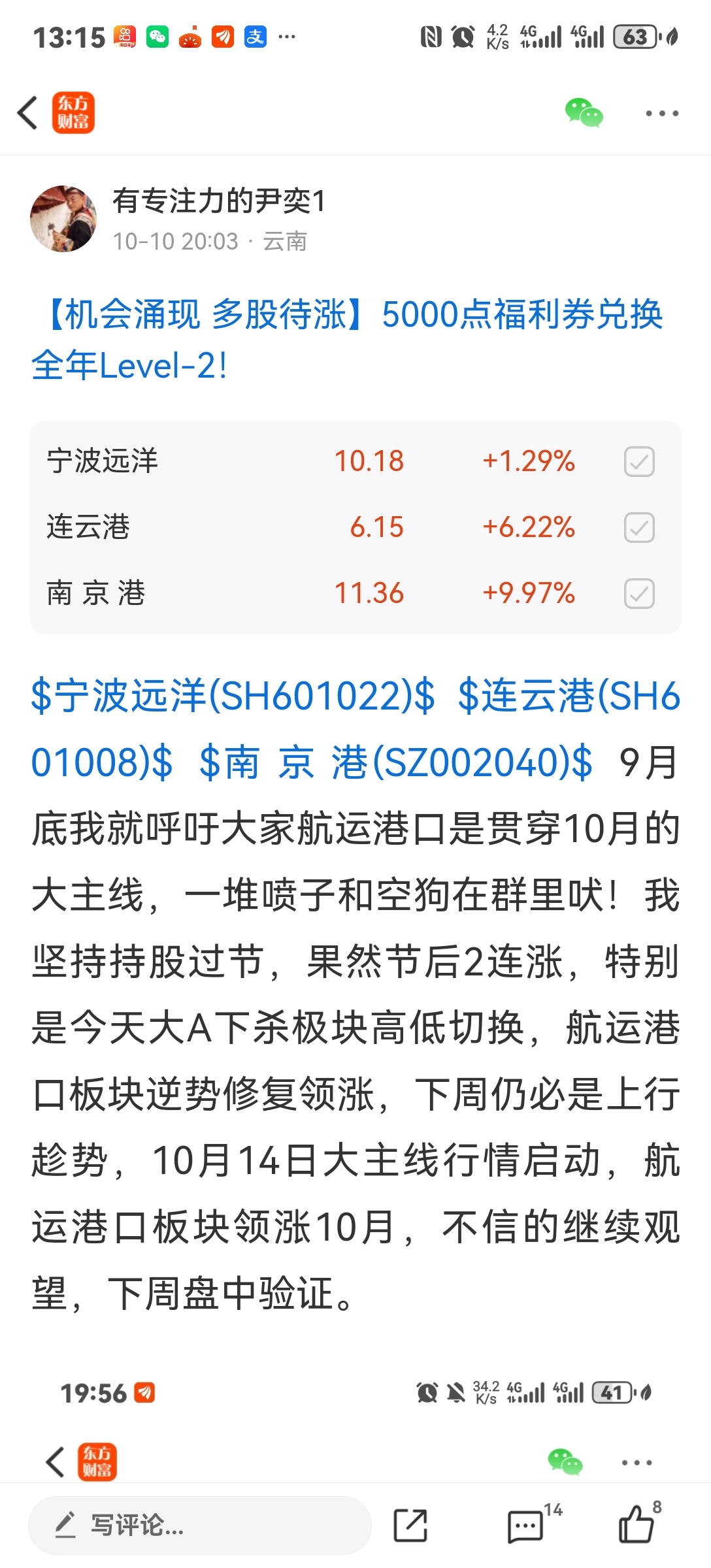 $南 京 港(SZ002040)$ $连云港(SH601008)$ $宁波远洋(SH601022)$ 听得懂的都跟我吃了肉,听不懂的踏空狗仍在狂吠,一律拉黑!不是每个人都会这样提醒你赚钱的,甚至连涨停的时间点都准确告诉你,分秒不差!