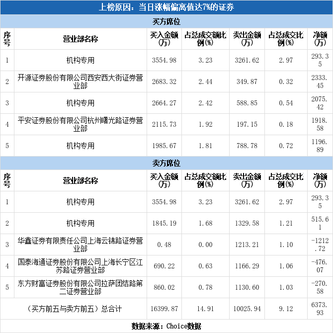 龙虎榜数据显示,今日共5个机构席位出现在龙虎榜单上,分别位列买一、买三、买五、卖一、卖二,合计净买入4081.27万元,占龙虎榜净买额的64.03%。