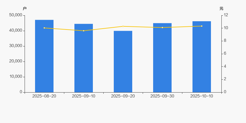 2025年8月20日至今,公司股东户数有所下降,区间跌幅为1.88%。2025年8月20日至2025年10月10日区间股价上涨2.89%。