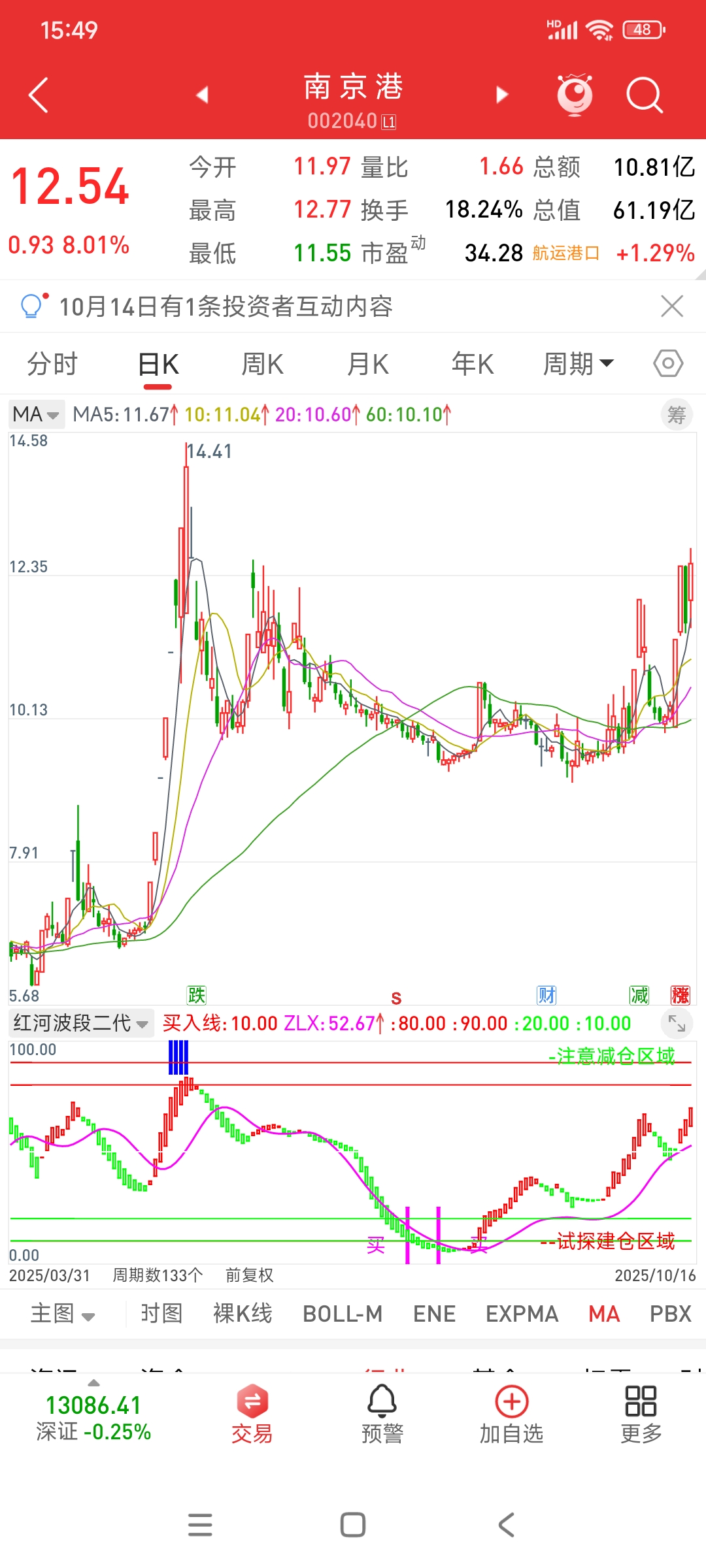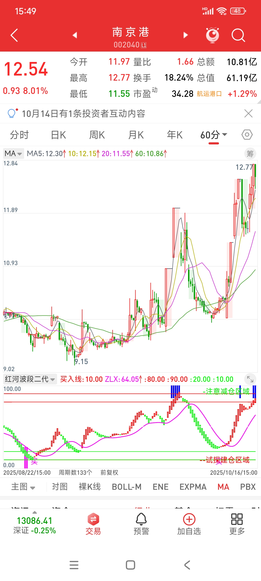 $南 京 港(SZ002040)$ 底部出现买字以后,再加上绿柱转红柱做确认,所以行情一路上行,毕竟红柱不停,上涨不止,红柱拉长,加速不止,蓝柱出现说明超买,这里注意随时止盈就行,当然,如果你做日线这种短趋势,可以拿一拿,短线这个位置就不要进了,适合持有不适合买。