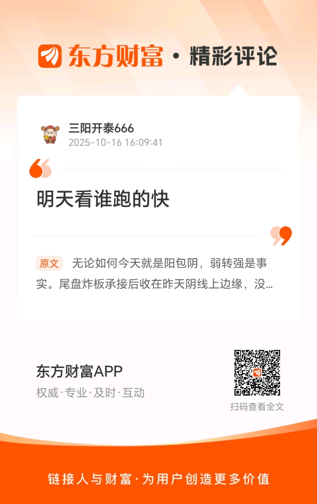 温馨提示: 1.根据《证券法》规定,禁止编造、传播虚假信息或者误导性信息,扰乱证券市场;2.用户在本社区发表的所有资料、言论等仅代表个人观点,与本网站立场无关,不对您构成任何投资建议。用户应基于自己的独立判断,自行决定证券投资并承担相应风险。《东方财富社区管理规定》
