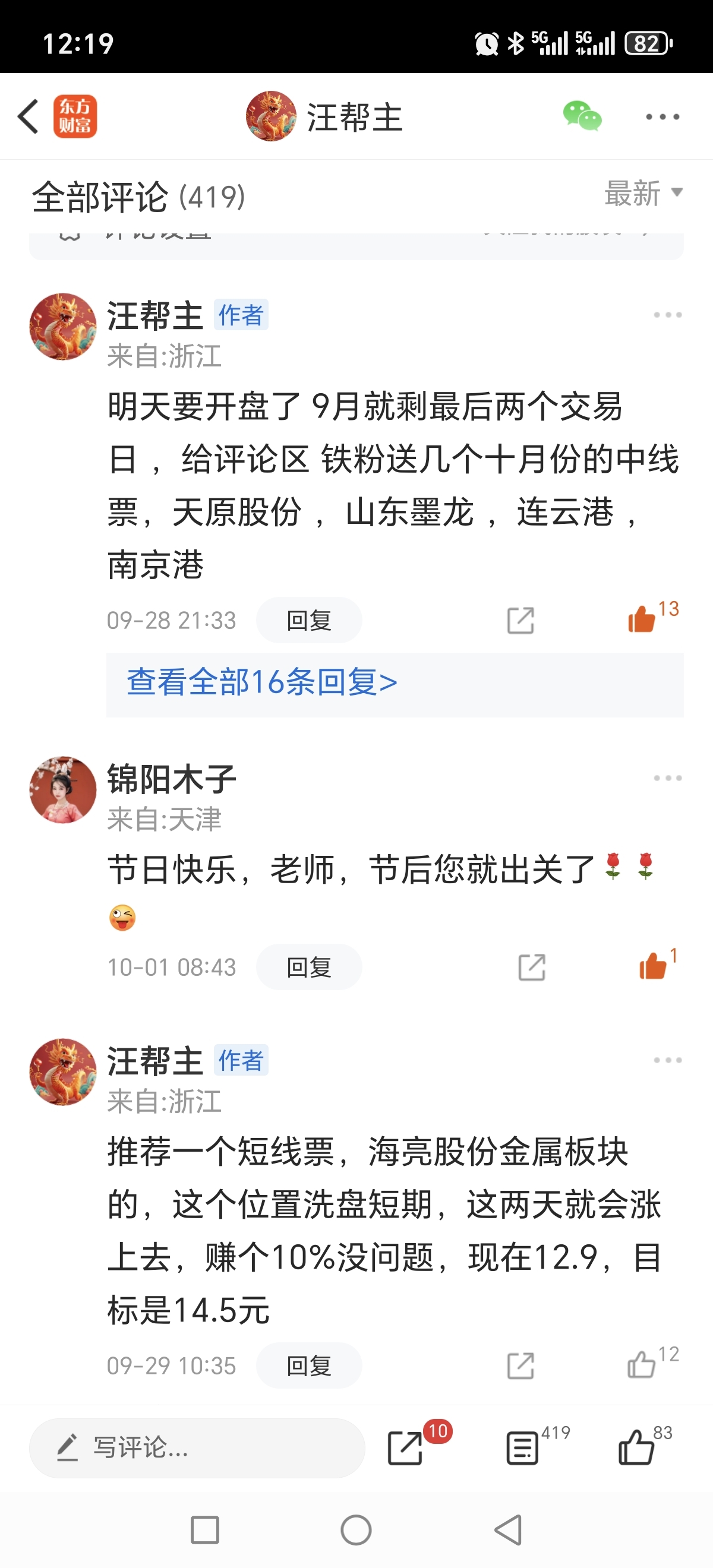 9月28号周五晚上我就提醒的这个票,另外还有三个,一共四个票在评论区说的,上车的