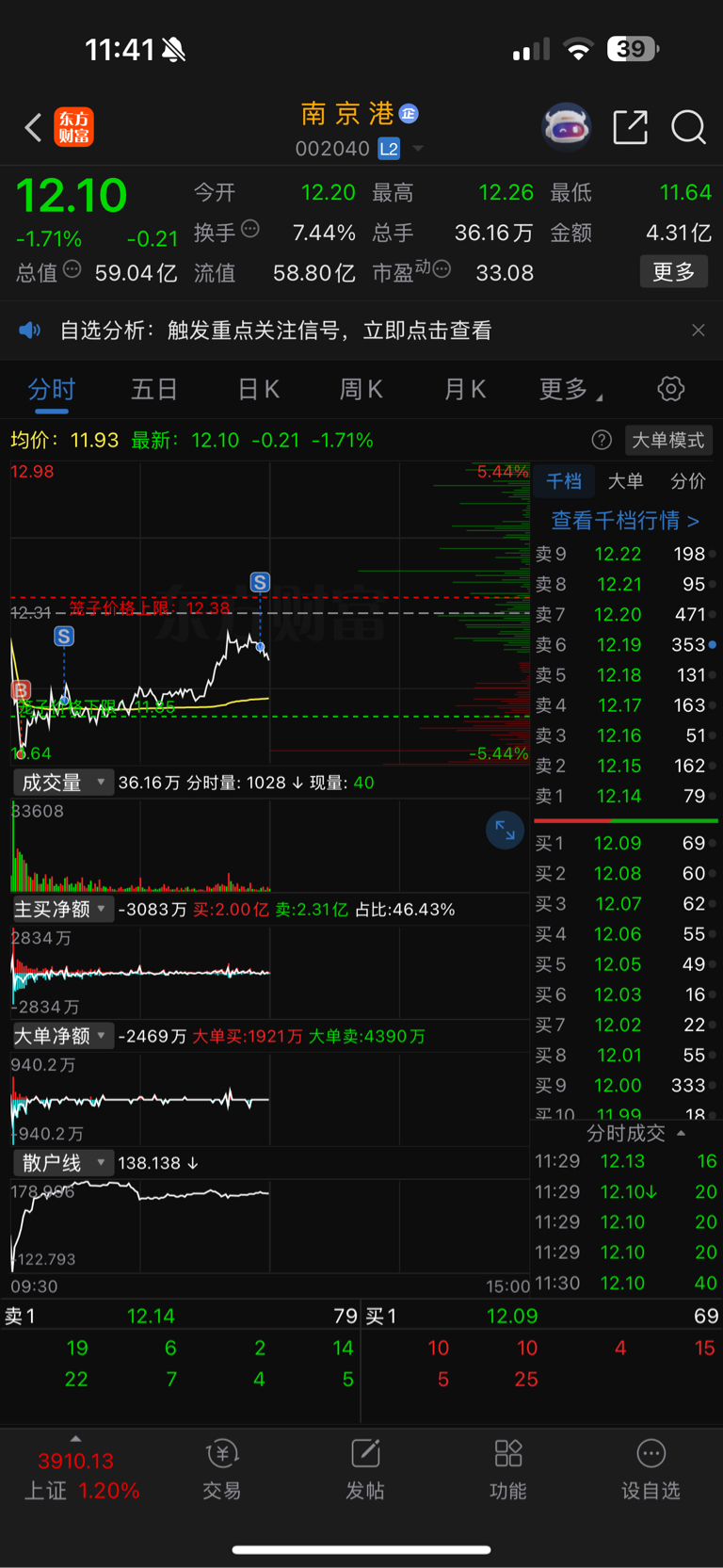 $南 京 港(SZ002040)$ 走了,就留早盘进的一点点底仓,家人们你们玩,祝大家发财!