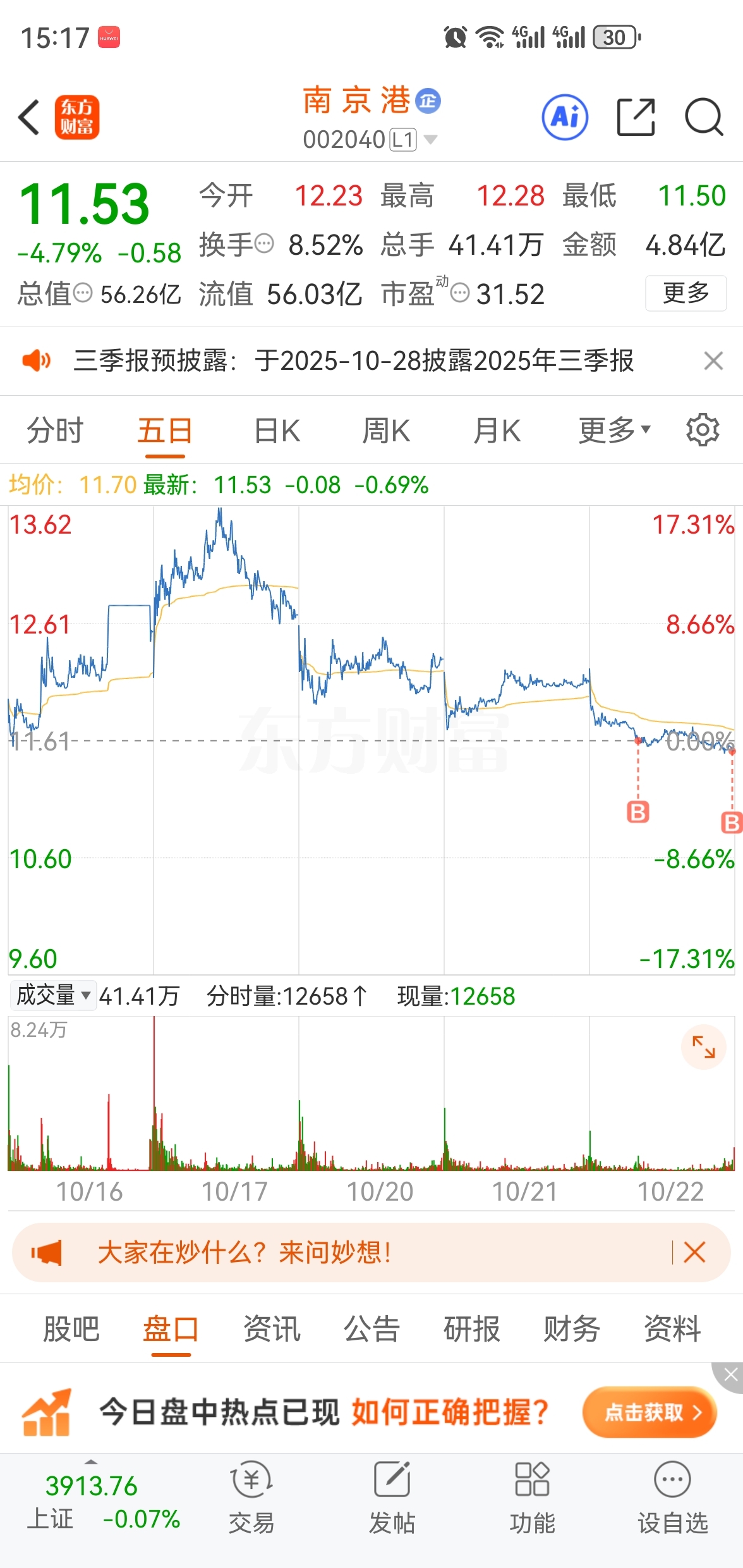 $南 京 港(SZ002040)$ 不要慌,没破5日线呢,尾盘买入的恭喜了,明天涨是一定的,多少就看脸了,如果异动港口,不排除涨停