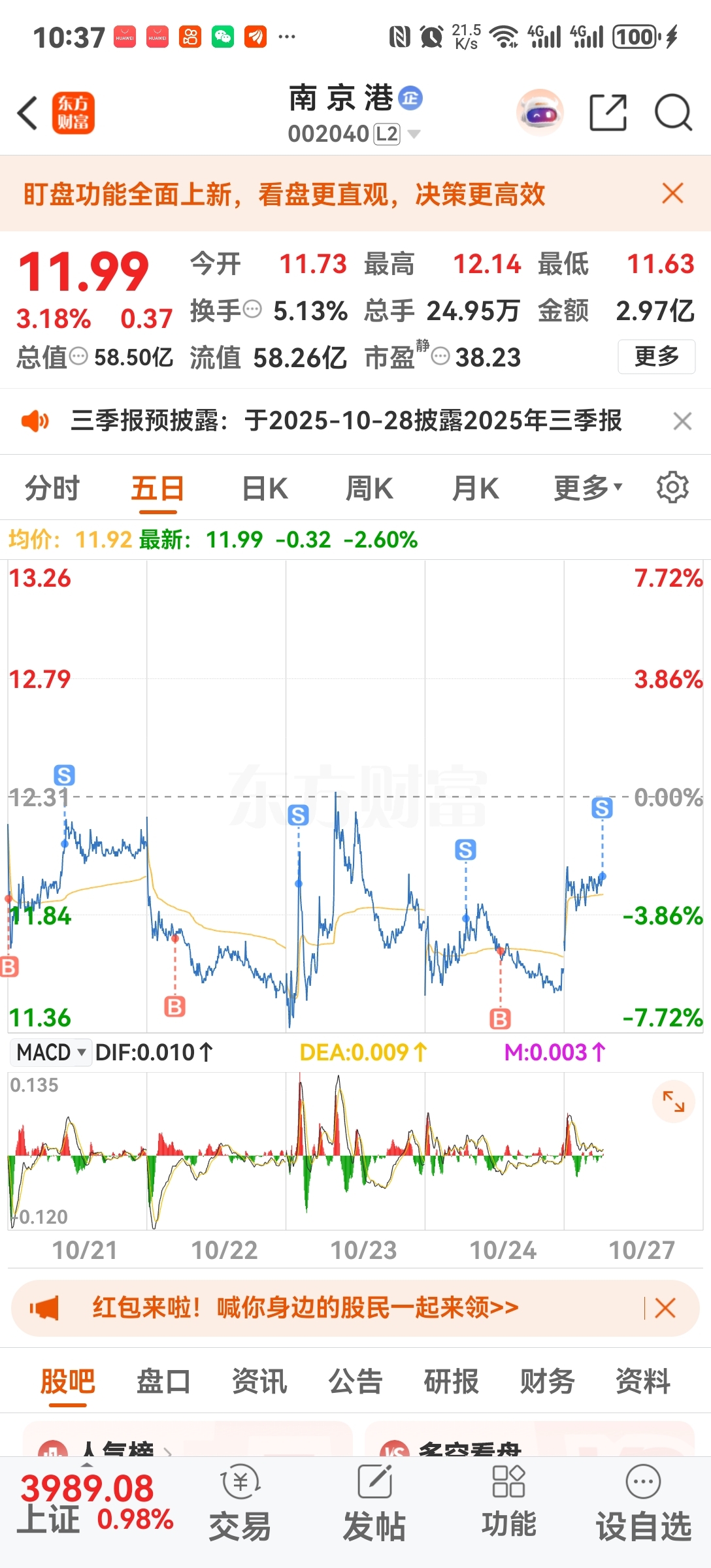 $南 京 港(SZ002040)$ 4000点量化空单太多,2次突破12均末形成有效突破,最好的方法就是先防守,我12清仓先走,今天即使突破也不会太大,下午大盘有回落风险,股市铁律就是冲高要舍得卖,下跌要敢于买,才能踏准每一个波段赢利!
