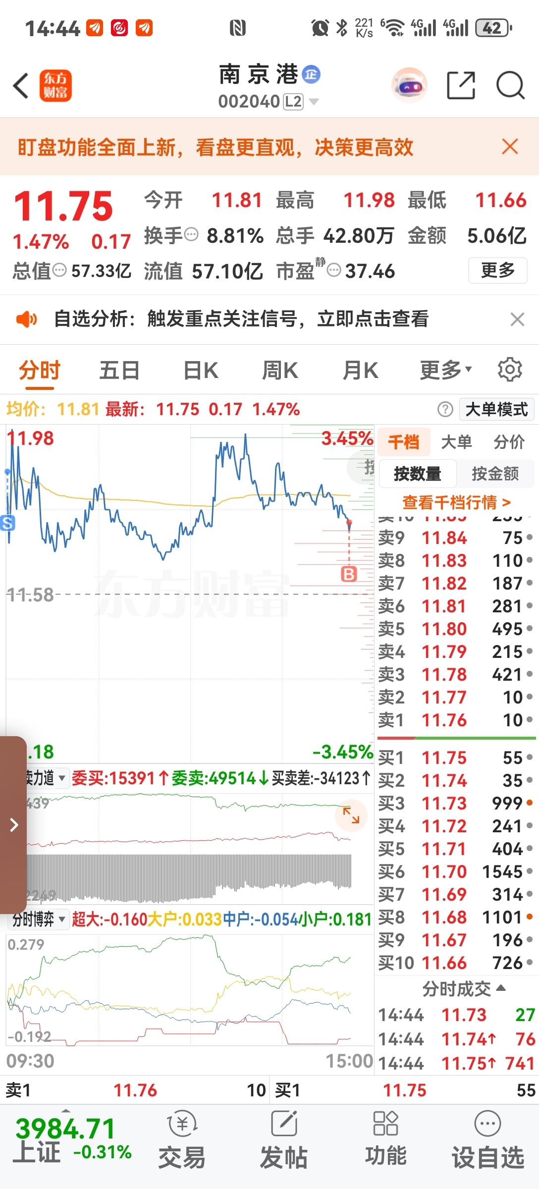 $南 京 港(SZ002040)$ 今天T少了!幸好尾盘有低点接回了