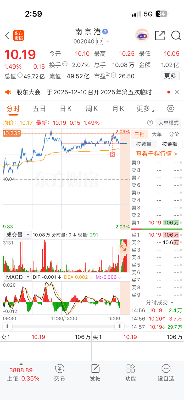 $南 京 港(SZ002040)$ 被挂山顶了 下周一能不能让我出来