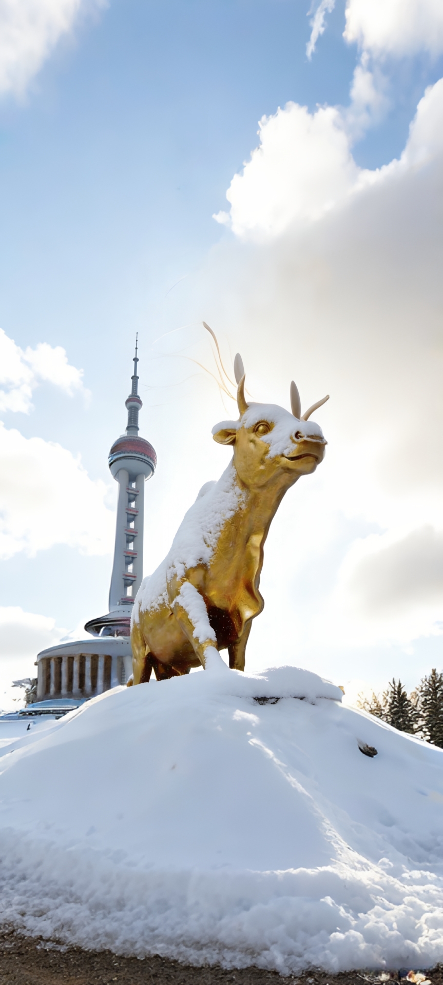 金牛踏雪迎春来,梅花绽笑福门开。春风拂面千家乐,瑞气盈门万事谐。