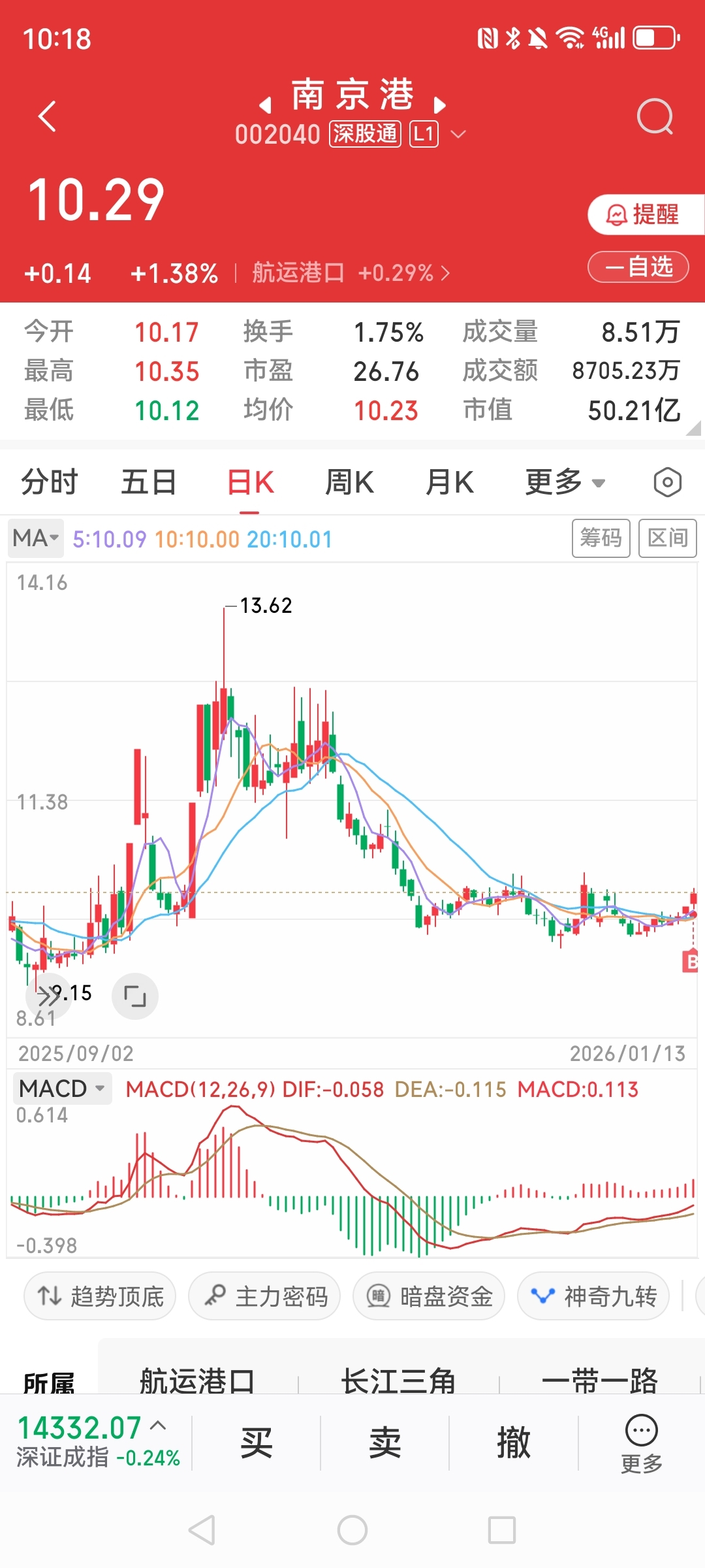 $南 京 港(SZ002040)$ 不贪心,等到20个点就跑!主力加油!
