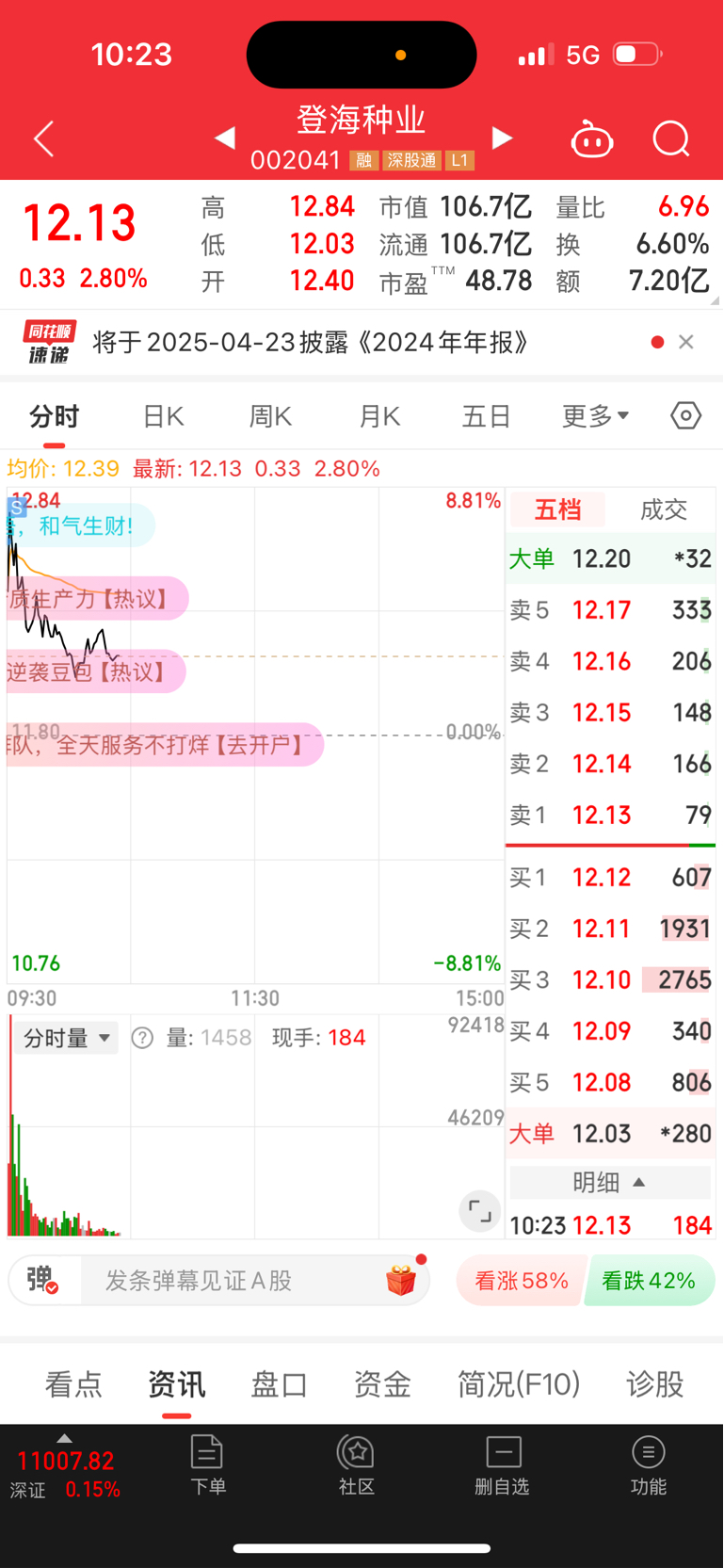 $登海种业(SZ002041)$ 我清仓了 10.55减仓 一路卖 …… 祝留下的发财