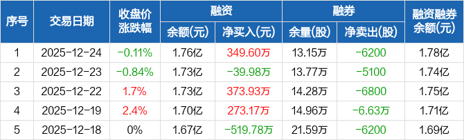 登海种业:融资净买入349.6万元,融资余额1.76亿元(12-24)