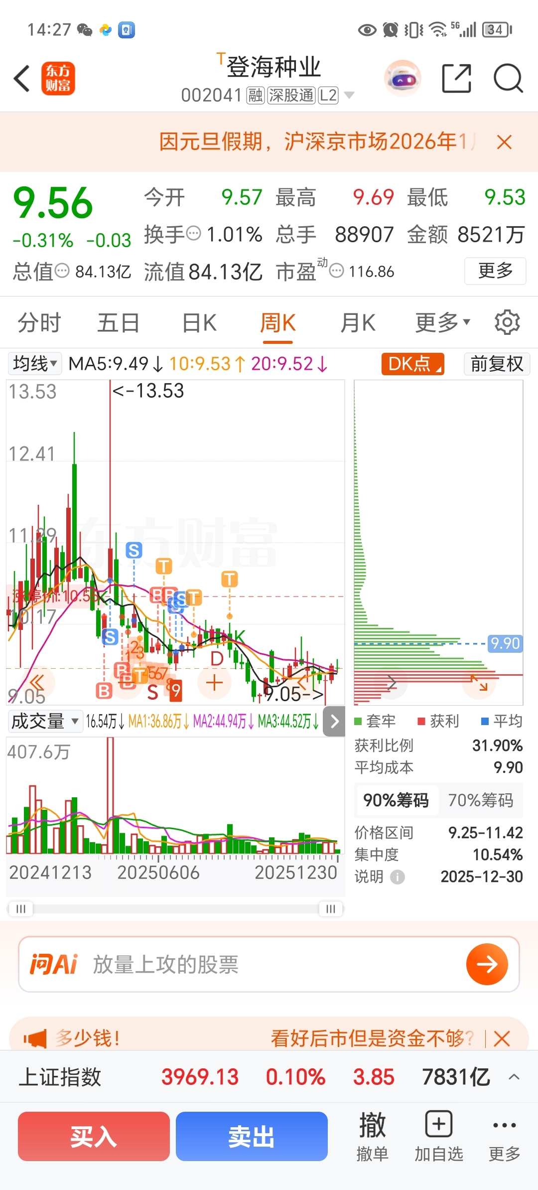 $登海种业(SZ002041)$ 我要来了哦