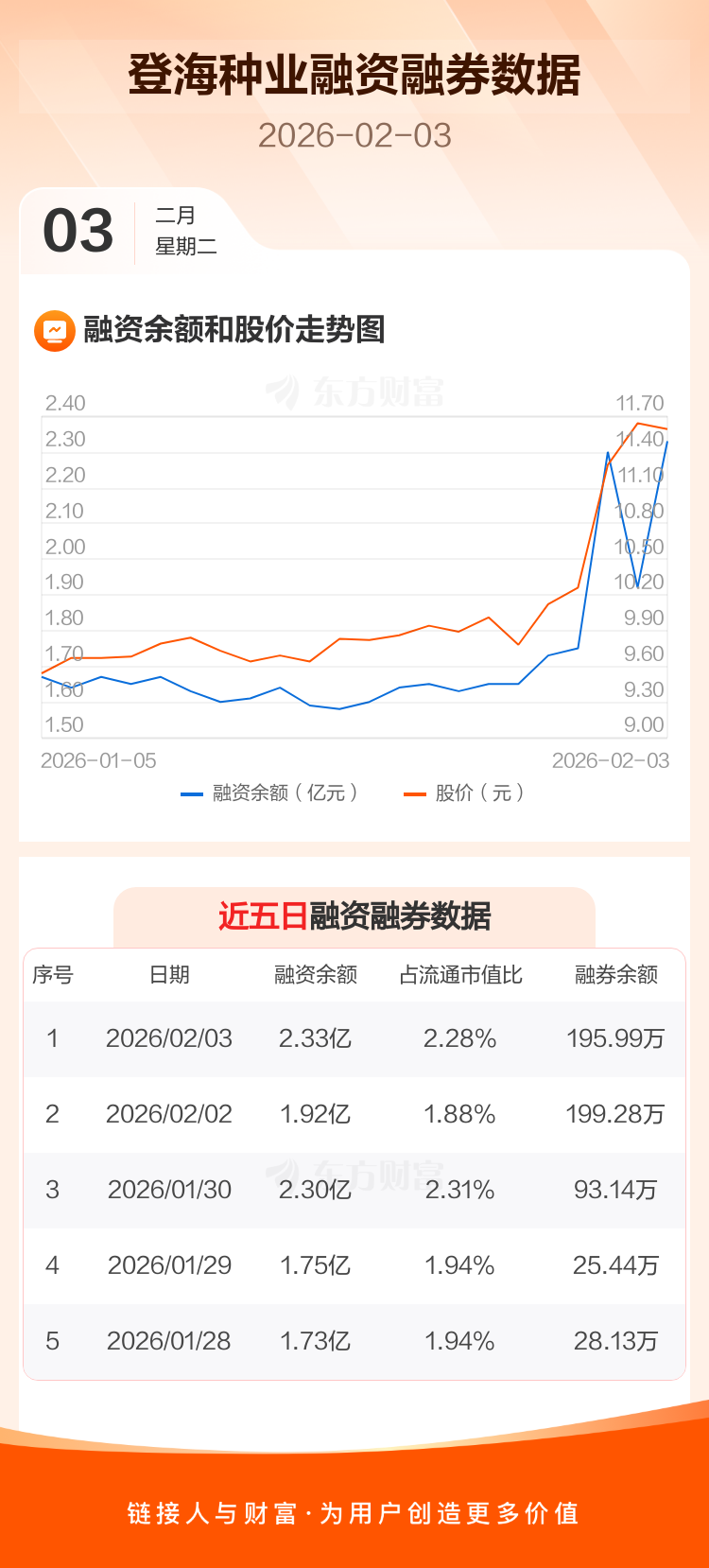 交易所最新数据显示,登海种业于2026年2月3日获融资买入1.10亿元,融资偿还6941.89万元,当日融资净买入4065.05万元。目前,该股融资余额2.33亿,占流通市值比例为2.28%。