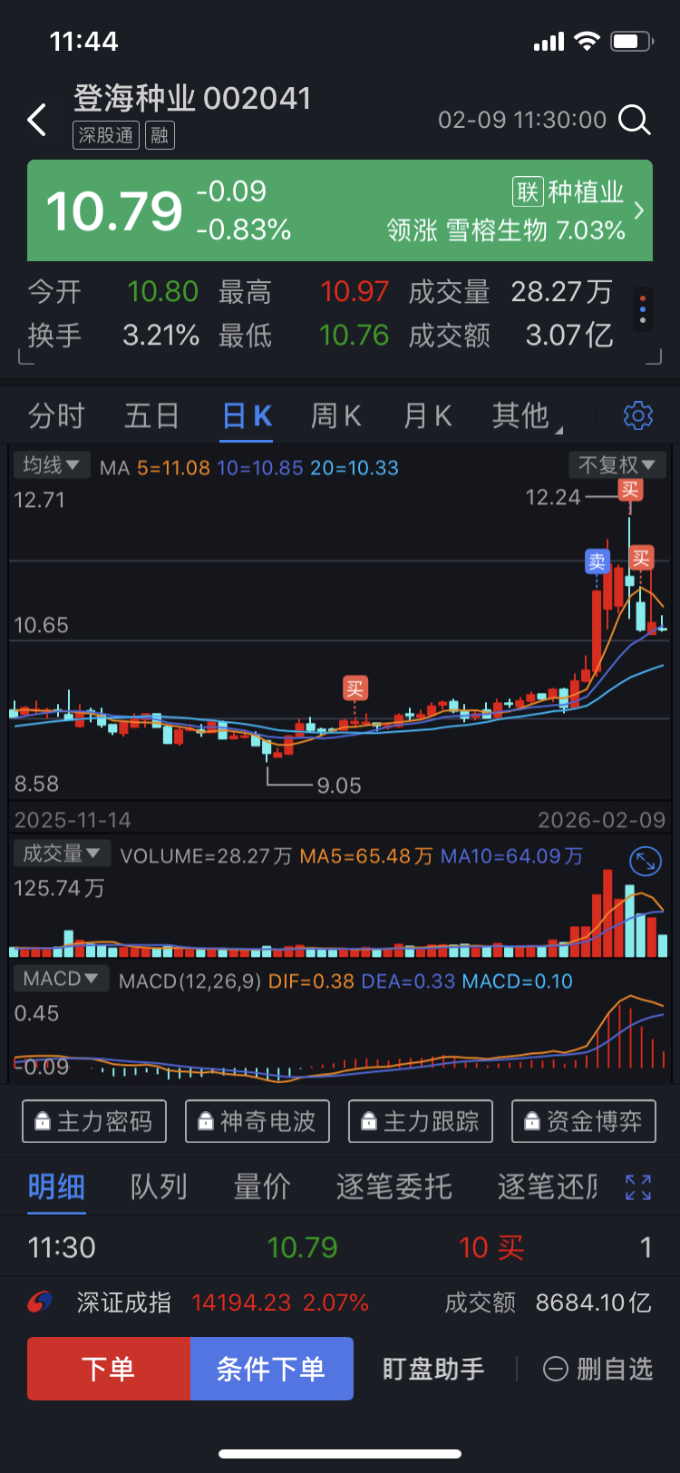 $登海种业(SZ002041)$ 连续2次补仓均被套,打算回10.42元进行第三次补仓。