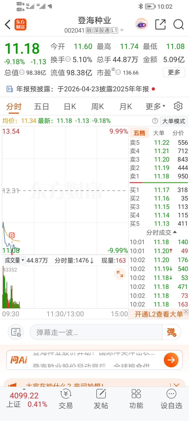 $登海种业(SZ002041)$ 看评论区各位股神的建议买的,亏钱找评论区索赔
