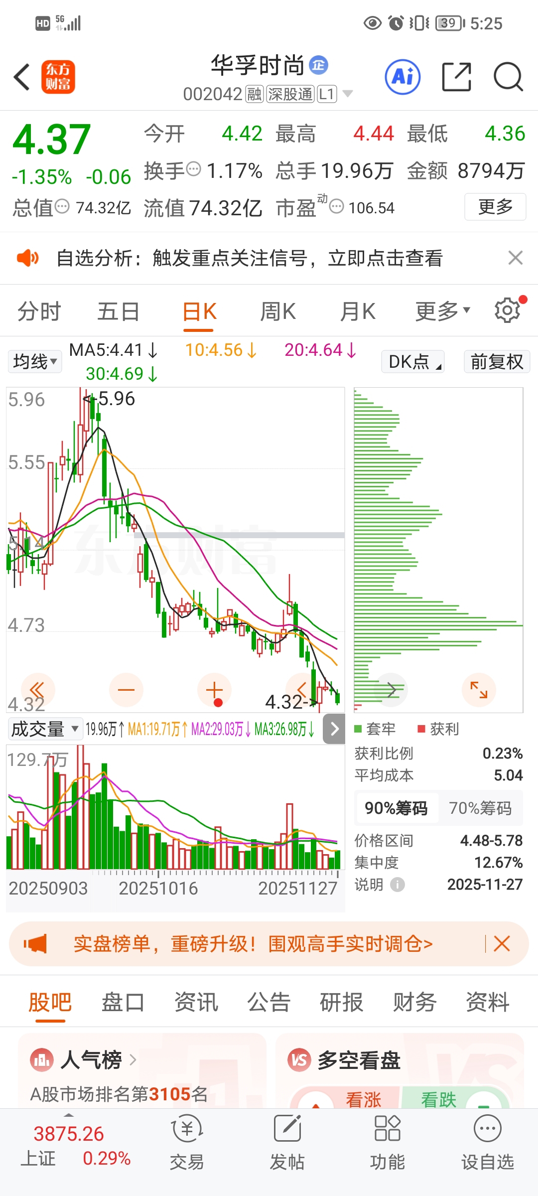 $华孚时尚(SZ002042)$ 我的老天爷,全是套牢盘