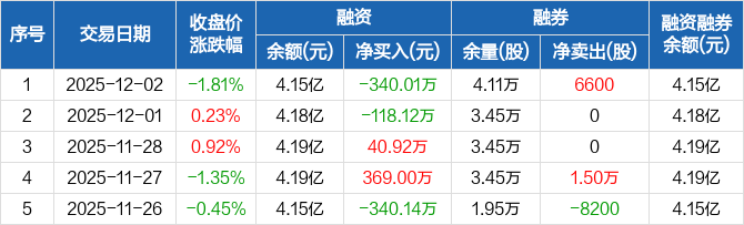 华孚时尚:融资净偿还340.01万元,融资余额4.15亿元(12-02)